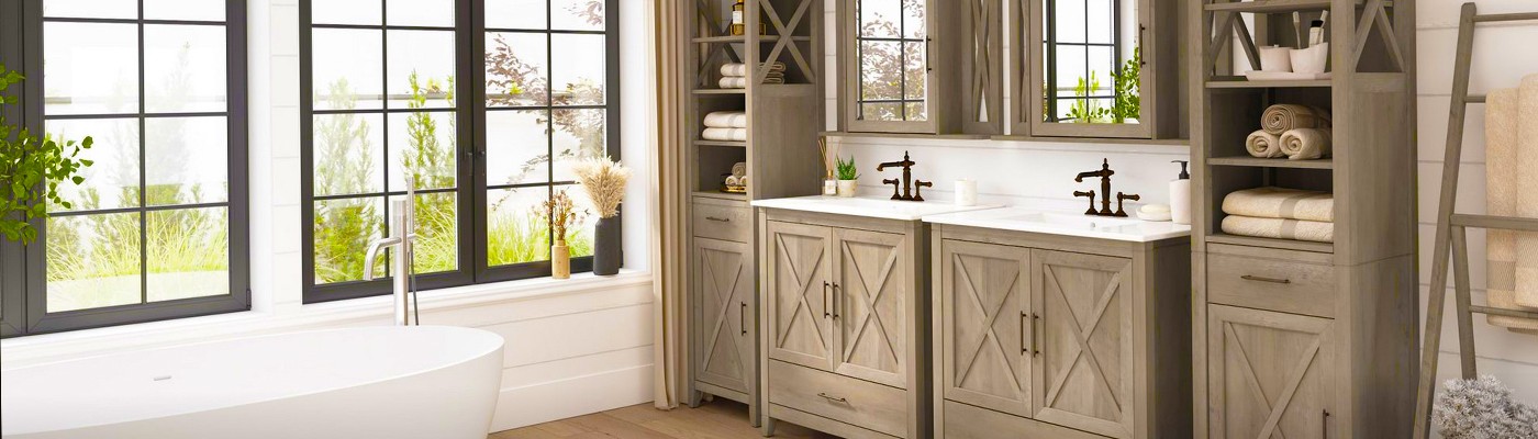 BATHROOM CABINET SET WITH MIRROR HIGH CABINET